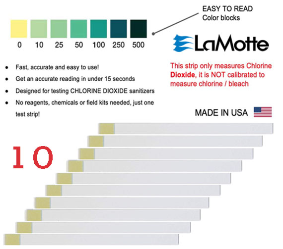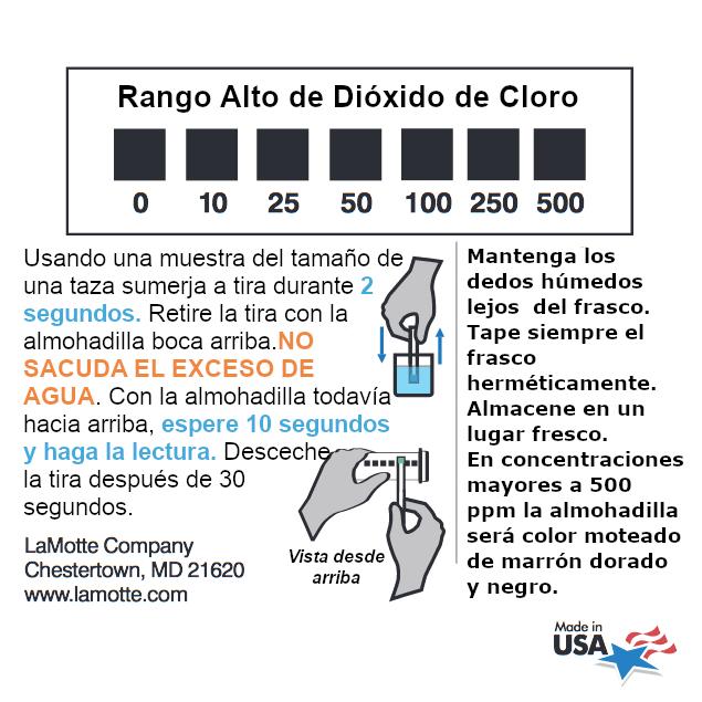 Incluye 10 tiras reactivas para medición del Clo2 y un Patrón de colores.