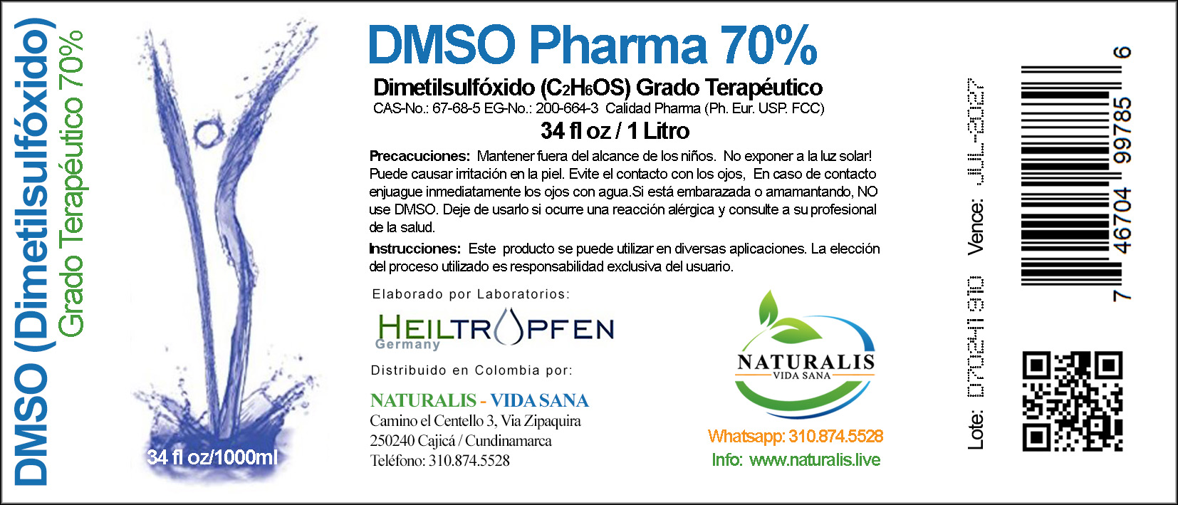 El envase contiene 1 Litro de DMSO rebajado al 70% para su uso terapéutico. De muy alta calidad.